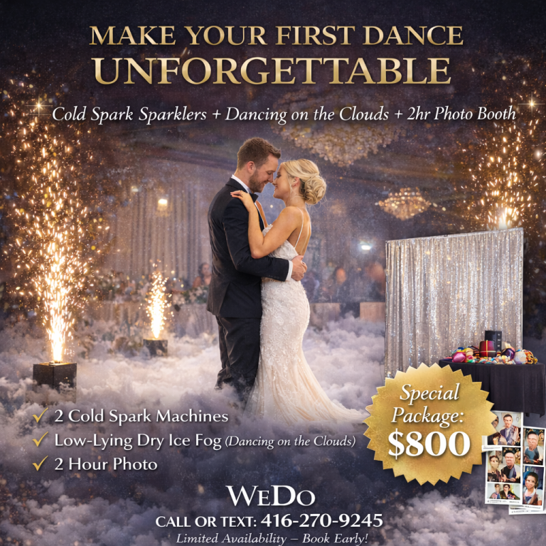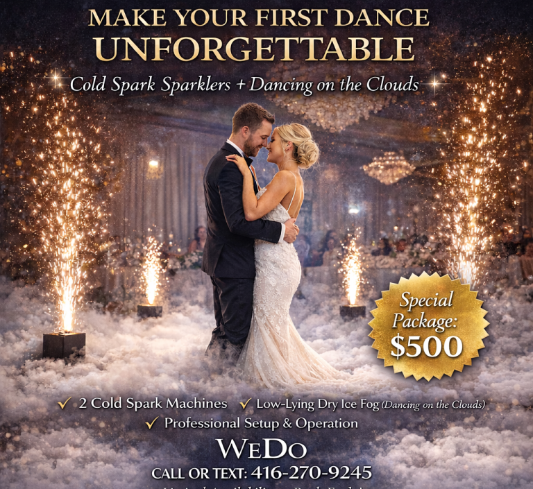 Dry Ice + 2 Cold Sparklers — $500. Perfect for first dances, grand entrances, and highlight moments across Toronto & the GTA. Sparklers only for $300